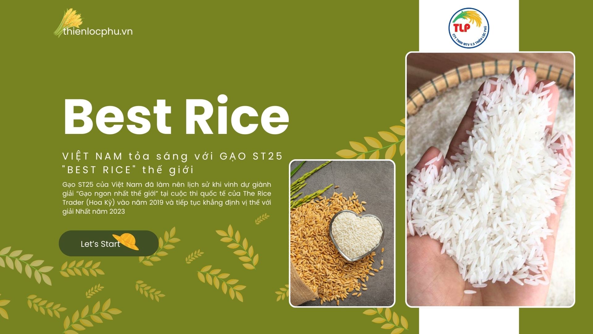 Công Ty TNHH MTV V.S Thiên Lộc Phú với nền tảng phát triển từ ngành nông nghiệp lúa nước, thấu hiểu được sự vất vả của người nông dân quanh năm tất bật vụ mùa. Năm 2016, công ty chúng tôi chính thức được thành lập với tên gọi Công Ty TNHH MTV V.S Thiên Lộc Phú cùng sứ mệnh mang đến sản phẩm gạo sạch, an toàn, đáp ứng yêu cầu ngày càng cao của người tiêu dùng trong nước và quốc tế.